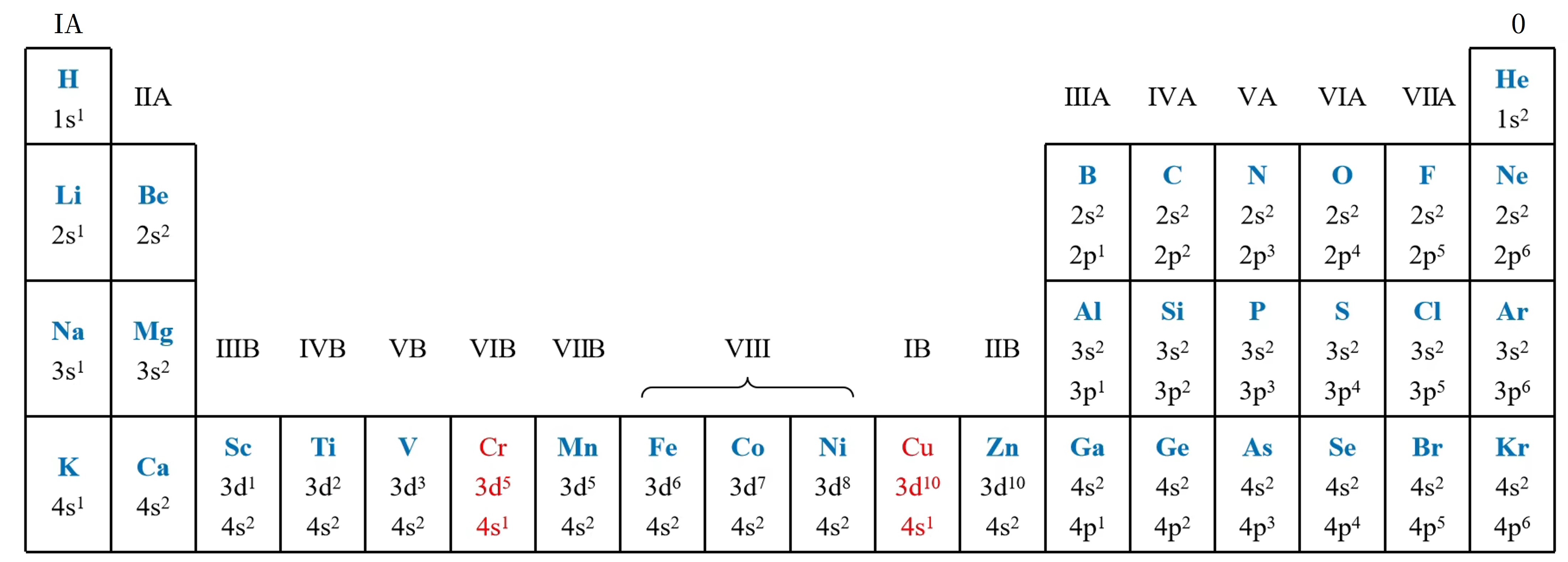 • 第四周期:4s14s23d14s2...3d104s24s24p1...4s24p6